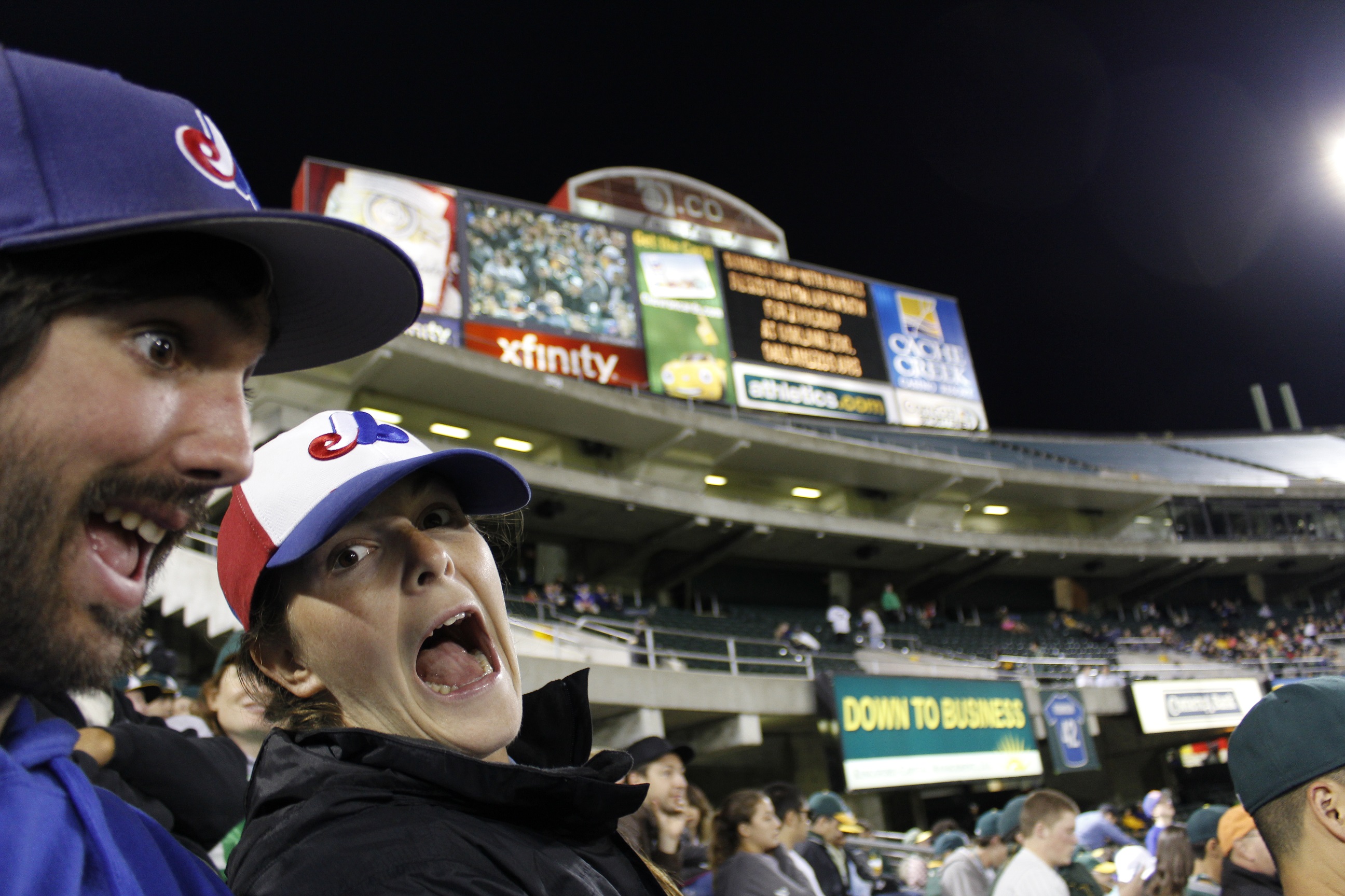 Bon on doit dire qu’on espérait avoir une bonne foule pour ce match du Vendredi soir. On trouvait qu’il y avait peu de gens présent quelques minutes avant le premier lancer… À la fin du match, on a quand même annoncé une foule de plus de 23,000 fans. On peut vous affirmer que, vers la 7ième manche, il y avait très peu des 23,000 annoncés encore au match. En 10ième manche, il ne restait pas beaucoup plus que 8,000 fans. On a demandé à notre placier où étaient tous les partisans. Il nous a d’abord expliqué que c’était le premier vendredi soir où les écoles secondaires jouaient leurs matchs de football. Aussi, il est évident que les fans se déplacent beaucoup moins tenant compte de la fiche de leur équipe locale. Quand on lui a parlé de l’attitude des fans, il nous a dit que, comparativement à d’autres villes, les fans qui se présentent aux matchs sont des vrais fans de baseball. On a remarqué que, dans les estrades, plusieurs fans semblaient déçus de leur équipe tout en continuant à l’encourager. On retrouvait aussi la foule du vendredi soir : les gens qui arrivent en 3ième manche avec une bière à la main et qui parte à la fin de la 7ième manche!
