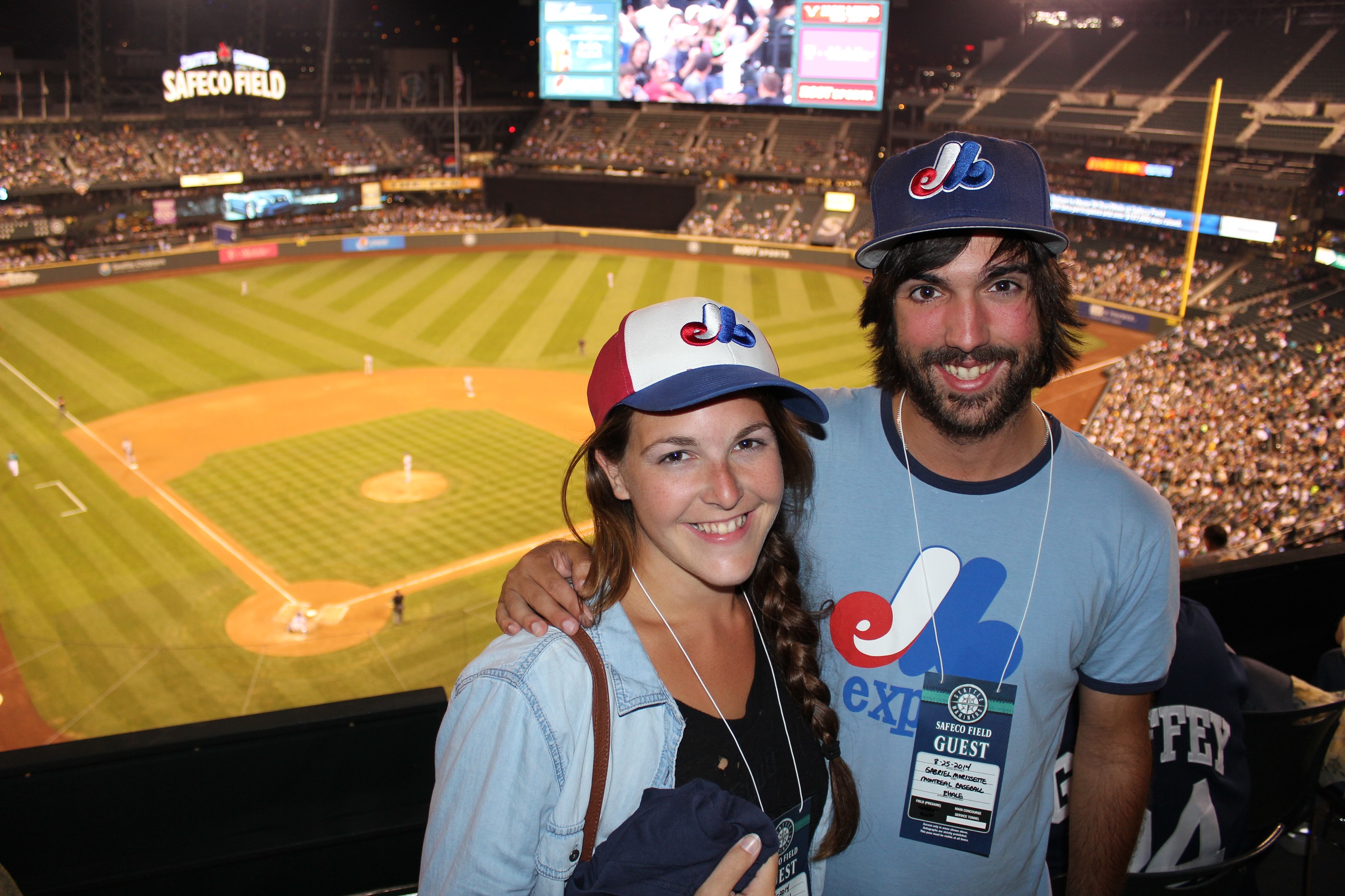 La visite n’étant pas trop longue, on s’assoit dans les bleachers du Target Field et on essaie d’attraper une balle lors de la pratique au bâton. Un des releveurs des Angels, Jason Grilli, reconnait nos chandails des expos. Il nous parle un peu et nous explique qu’il a déjà joué au stade olympique. C’est l’endroit où il a cogné son seul coup de circuit en carrière, en 2001, alors qu’il jouait pour les Marlins! Jason a été très gentil avec nous et les autres fans autour de nous en répondant aux questions. Il nous a donné et signé une balle! Notre première du voyage! Très ‘’classy’’ comme joueur.
